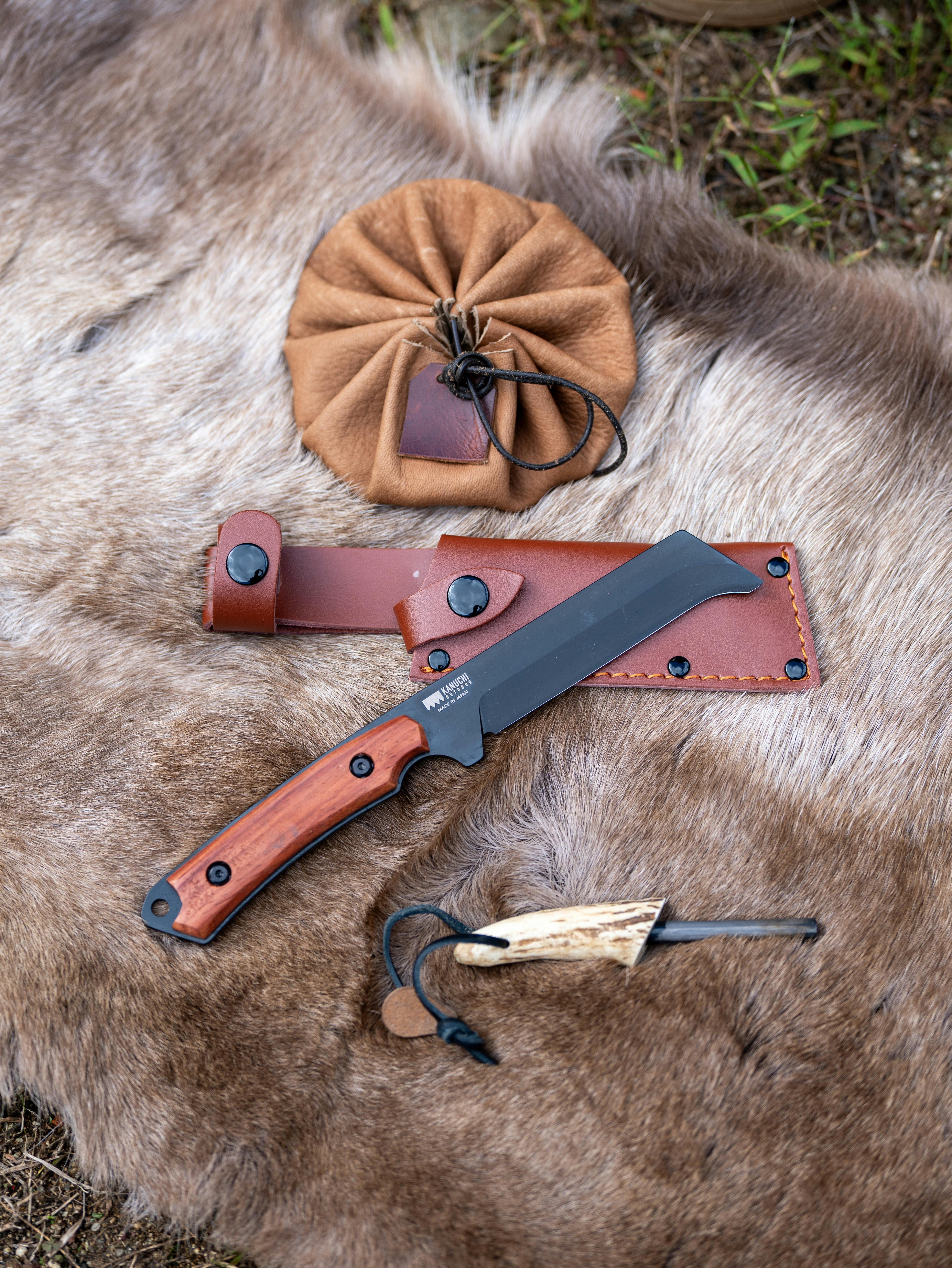 KANUCHI OUTDOOR フルタングナタ 牛革ケース付 携帯 両刃 箸付 日本製 アウトドア キャンプ レジャー 薪割り フェザースティック バトニング 4143060【別送品】