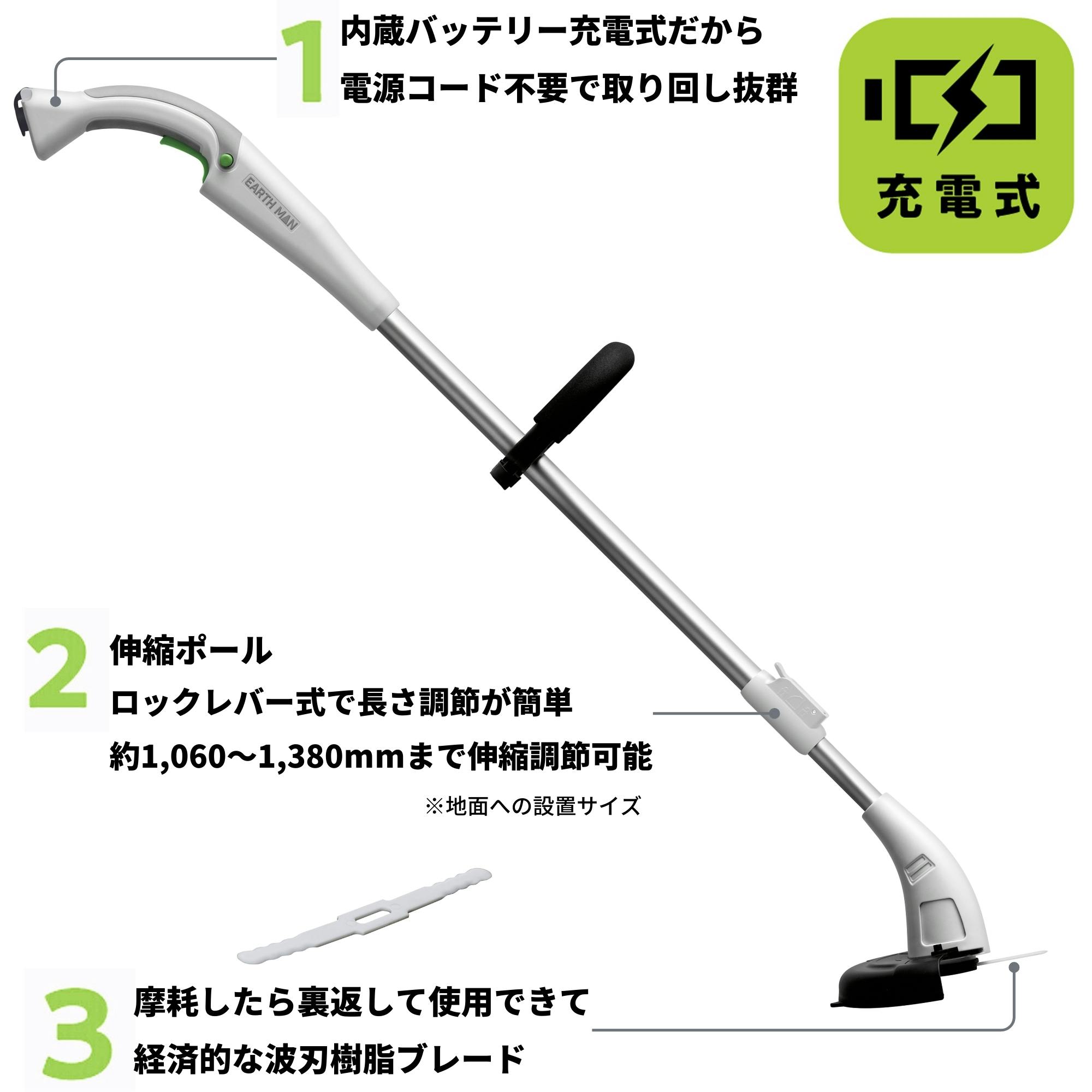 EARTH MAN 10.8V充電式コンパクト軽量ブレードグラストリマー GGT-108LiA 4個セット 草刈り機 刈り込み 波刃樹脂ブレード 伸縮【別送品】