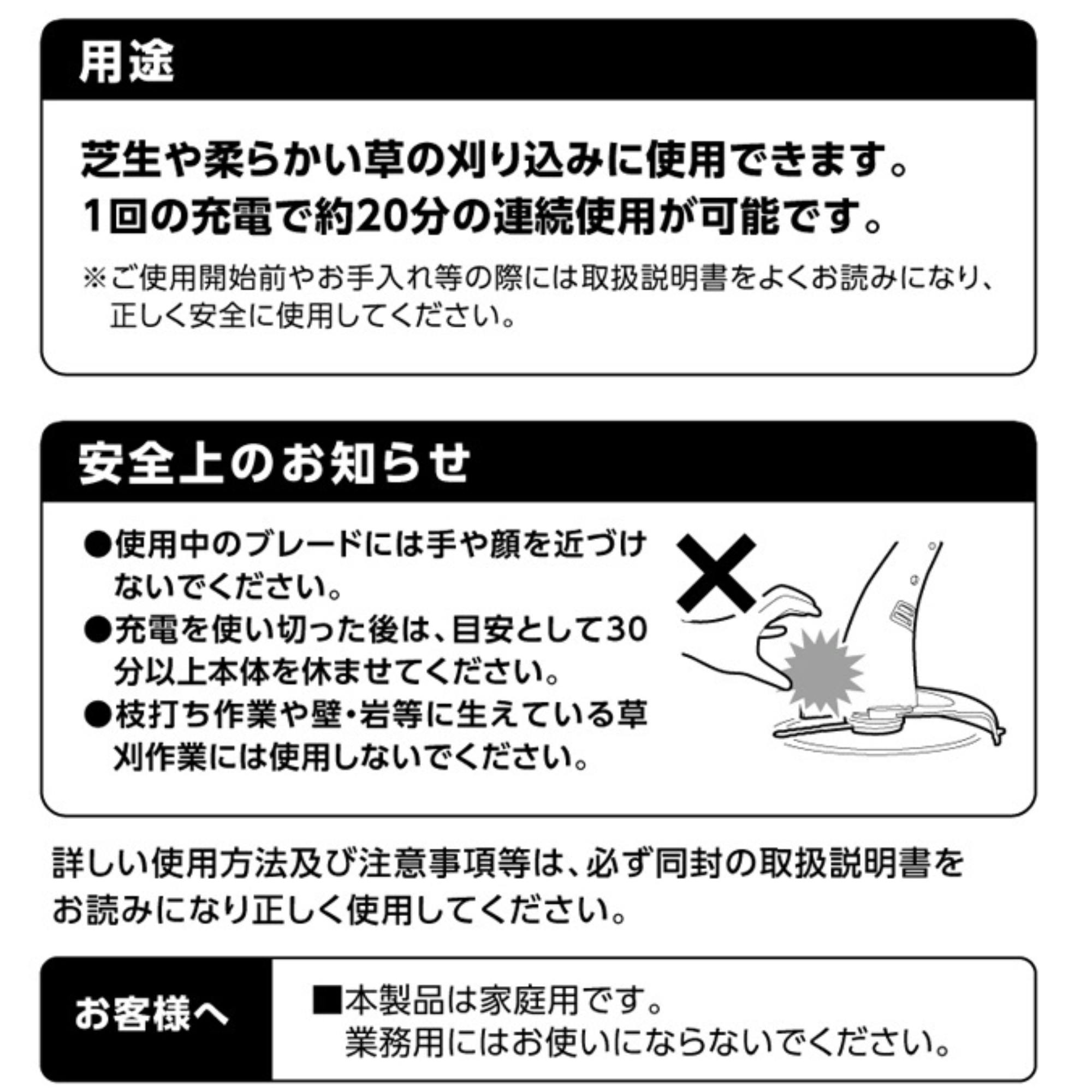 ●4個セット●電源コード不要で取り回し抜群な内蔵バッテリー充電式●安心安全ブレードタイプの草刈機●刈り刃もブレード仕様なので安全にご使用いただけます●ロックレバー式で長さ調整が簡単なワンタッチ伸縮式ポール採用