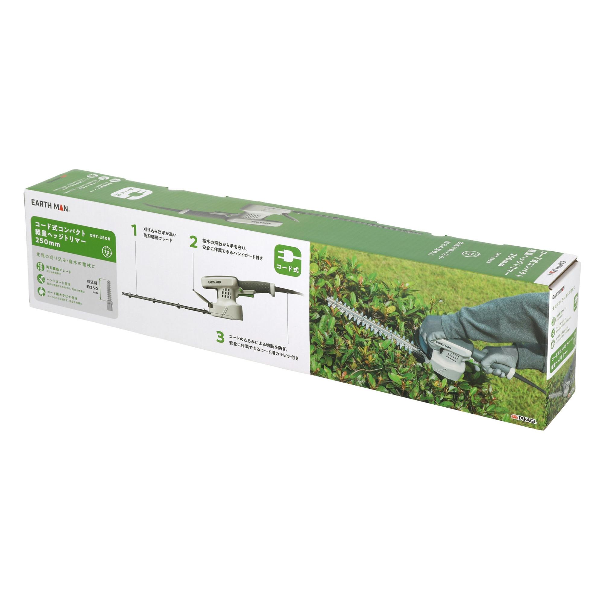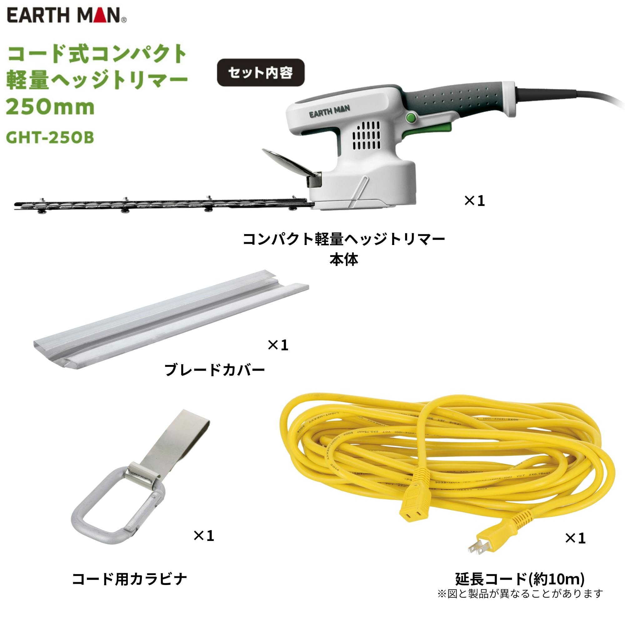EARTH MAN コード式コンパクト軽量ヘッジトリマー250mm GHT-250B 6個セット 刈り込み 庭木 整枝 両刃駆動ブレード コード用カラビナ付【別送品】