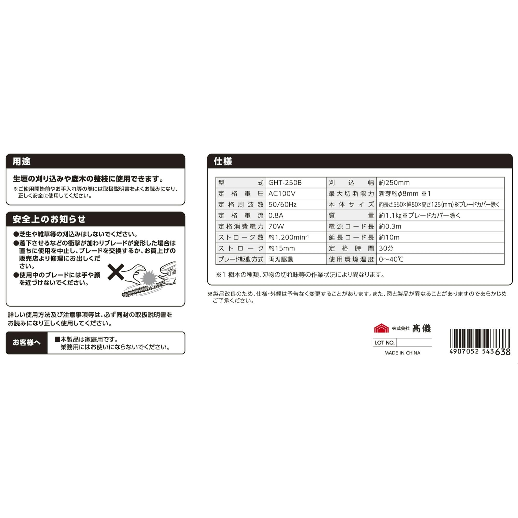 ●6個セット●刈り込み効率が高い両刃駆動ブレード●枝木の飛散から手を守り、安全に作業できるハンドガード付き●コードのたるみによる切断を防ぎ、安全に作業できるコード用カラビナ付き