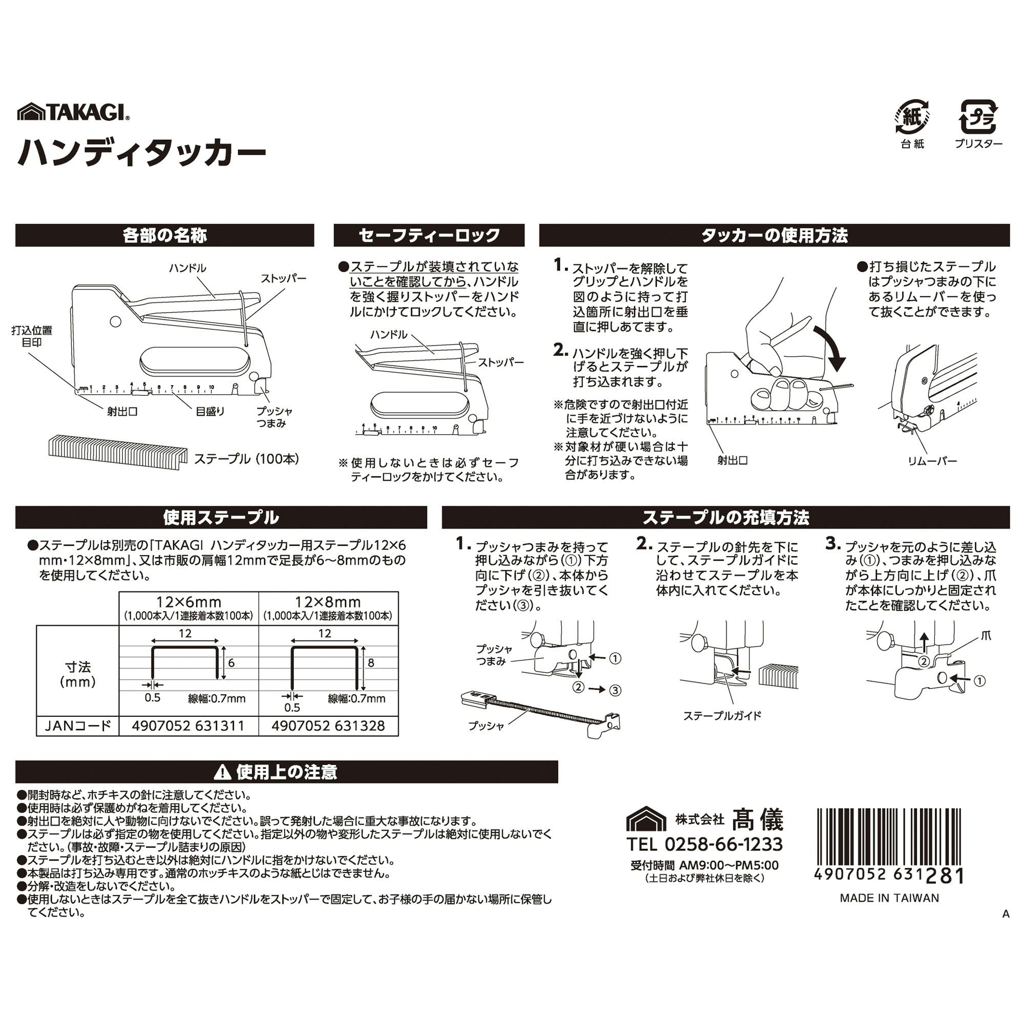 TAKAGI ハンディタッカー ステープル100本入 20個セット キャンバス製作 パネル製作 ポスター貼り 固定 網張り【別送品】
