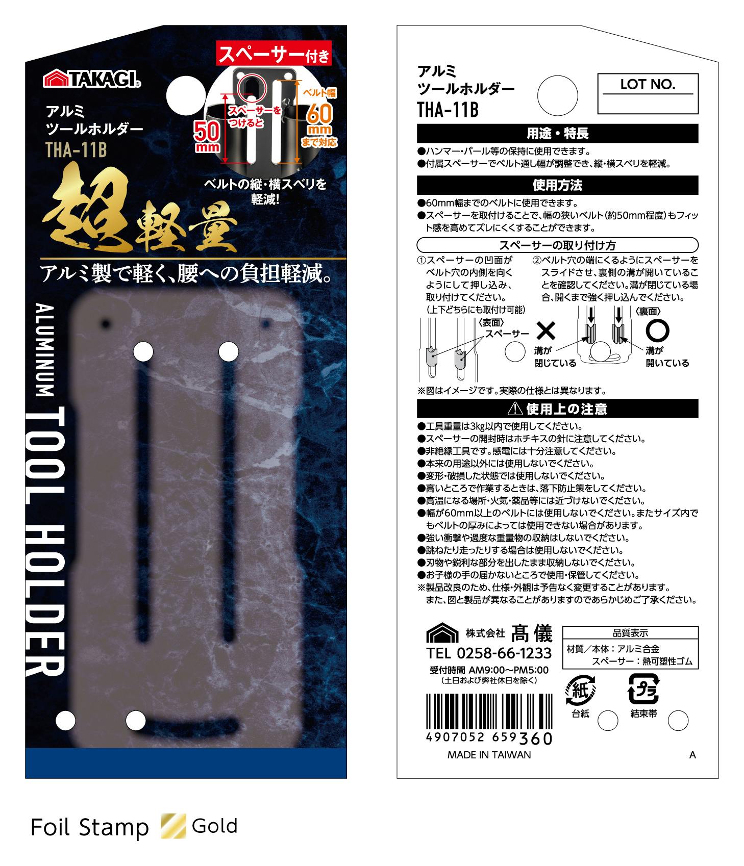 TAKAGI アルミツールホルダー THA-11B ハンマー・バール差し スペーサー2個付 72個セット ベルト通し幅調整可能 ベルト幅60mmまで対応 工具差【別送品】