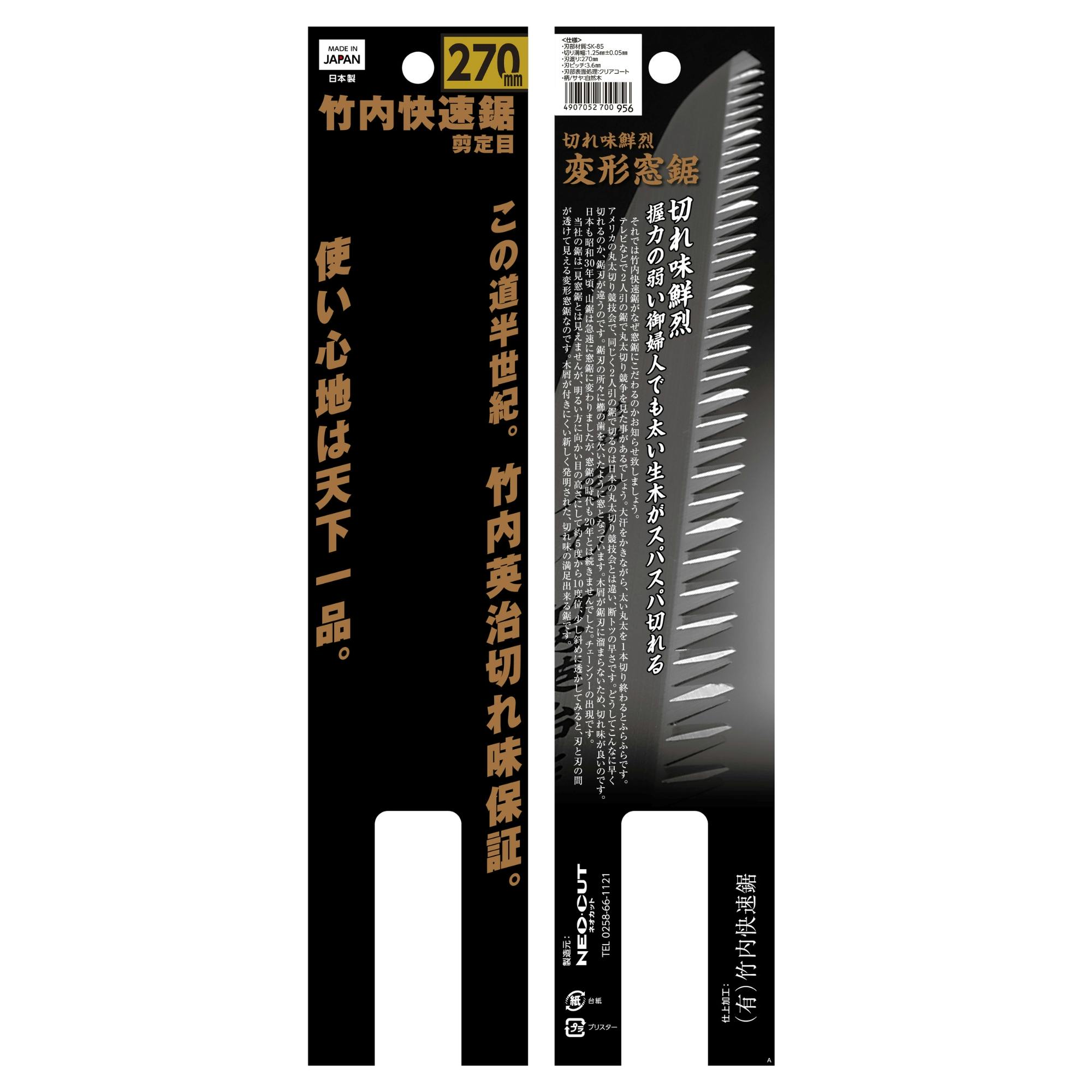 TAKAGI 竹内快速鋸 剪定目 270mm 25個セット 生木の切断 変形窓鋸 切れ味持続 木くずが詰まりにくい 錆に強い 日本製【別送品】
