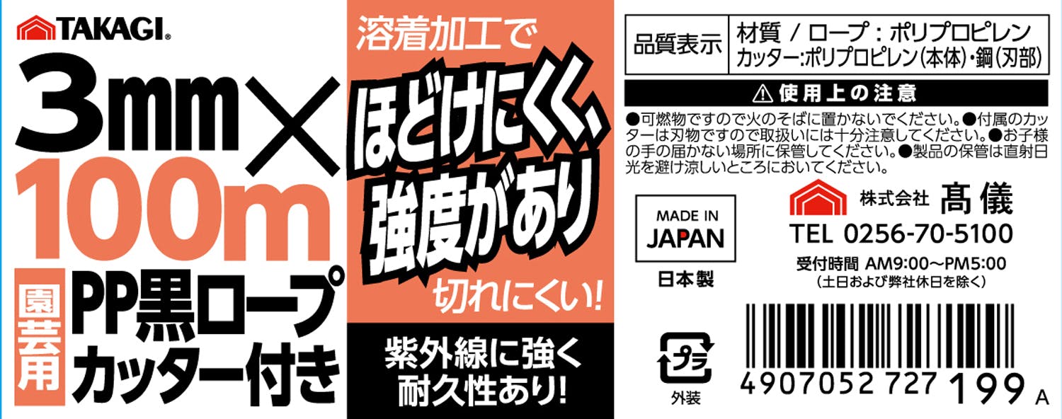 ロープ材質:ポリプロピレンカッター材質:ポリプロピレン刃部材質:鋼原産国:日本