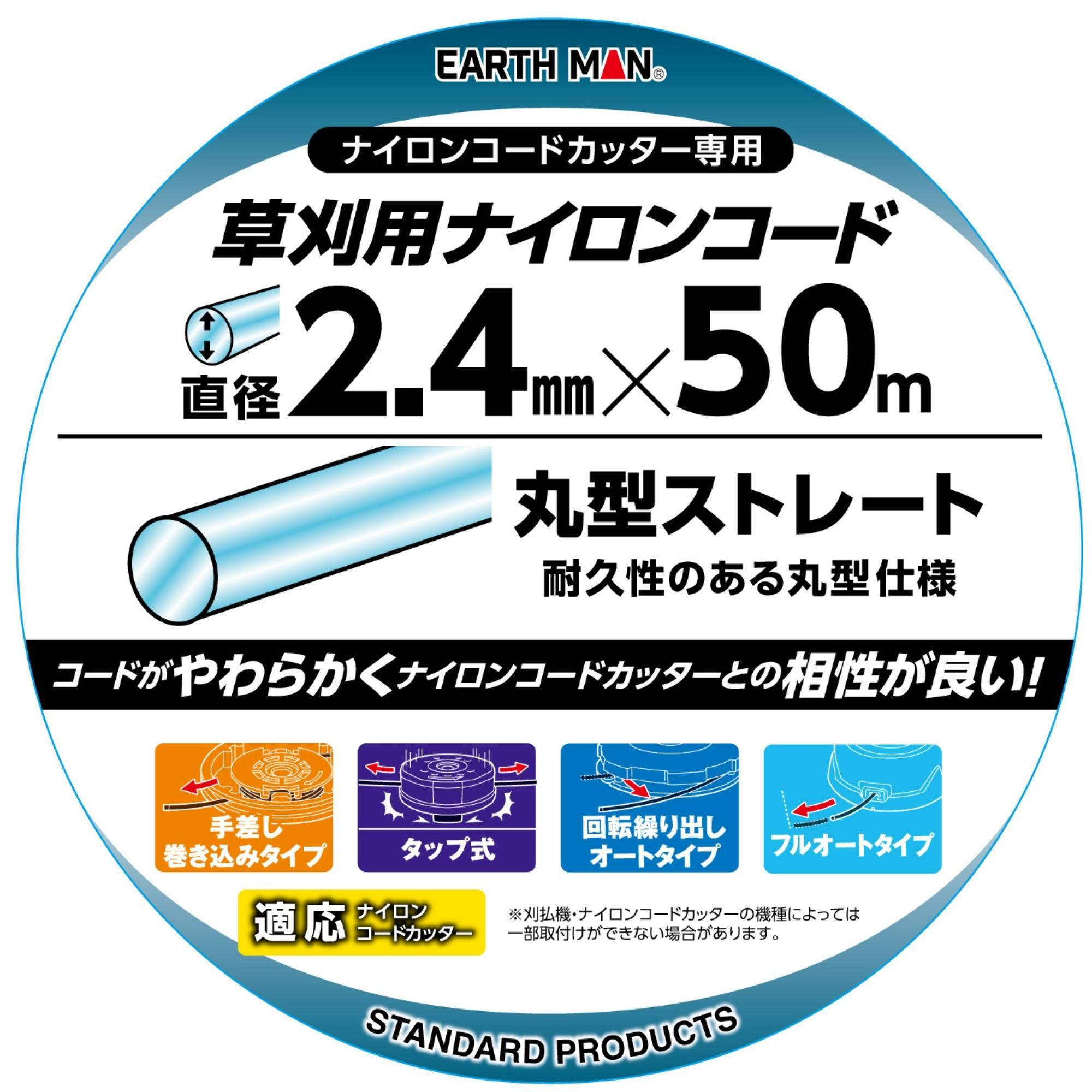 EARTH MAN 草刈用ナイロンコード 丸型ストレート 直径2.4mm×50m 青 42個セット 草刈機 刈払機 耐久性 やわらかい【別送品】