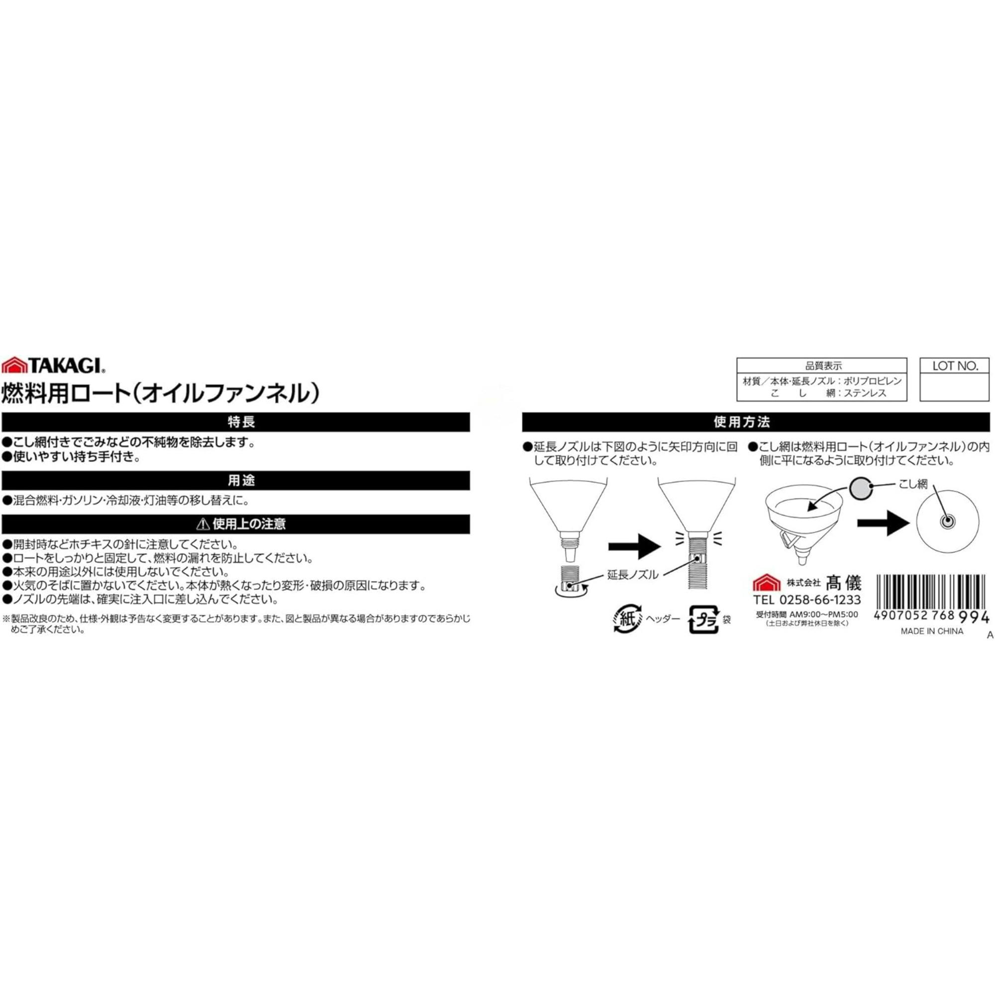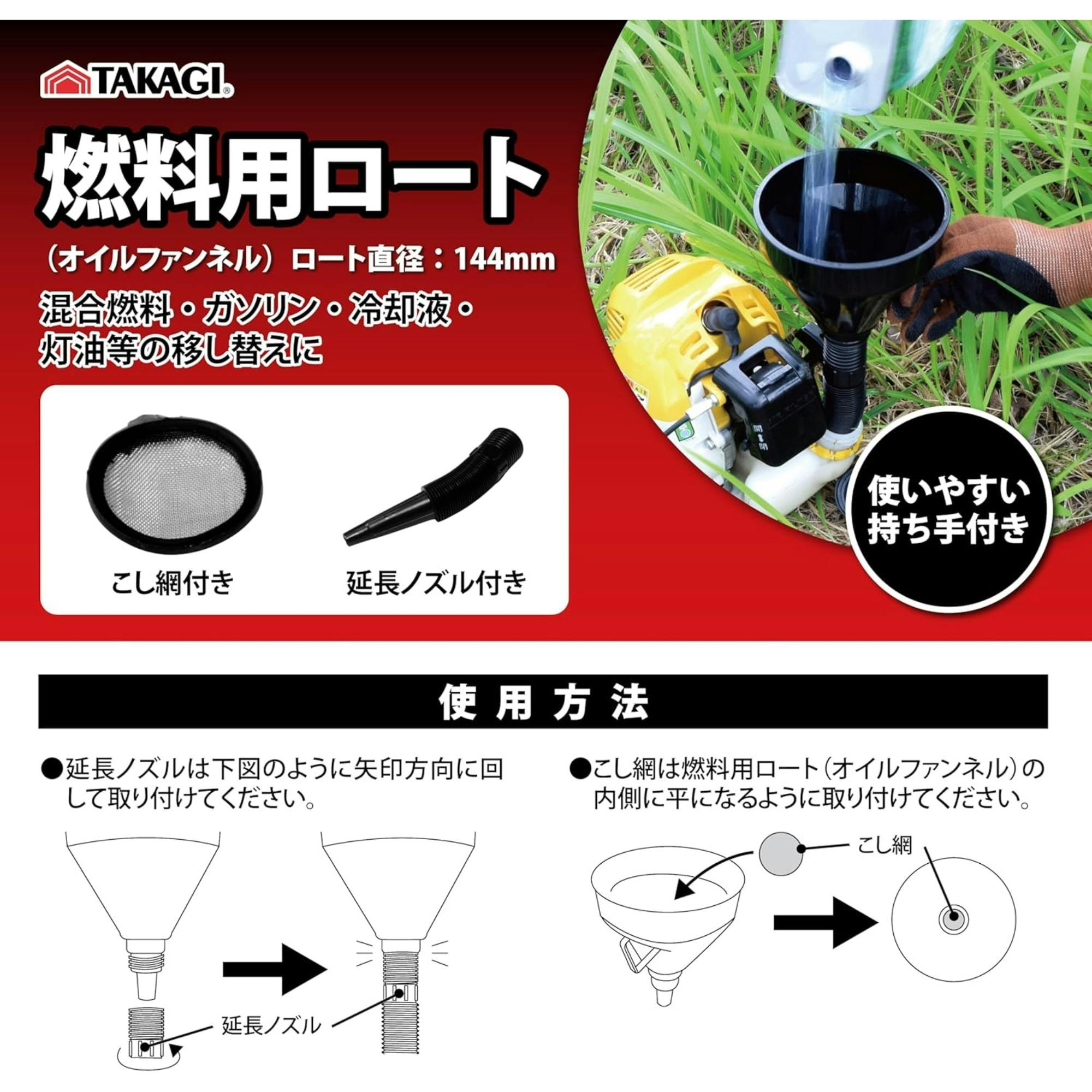 TAKAGI 燃料用ロート オイルファンネル こし網付 延長ノズル付 50個セット 曲げ可能 持ち手付 混合燃料 ガソリン 冷却液 灯油 移し替え【別送品】
