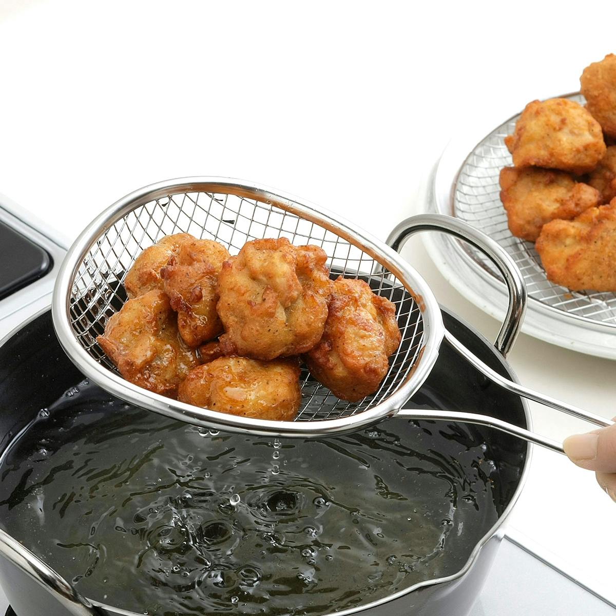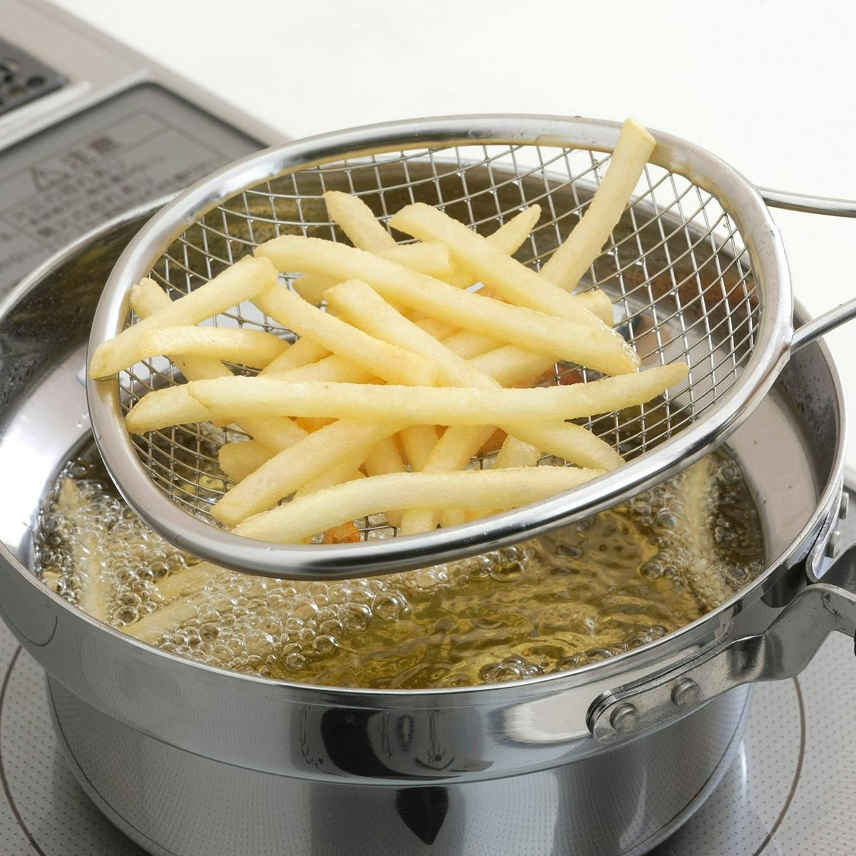 ●目の大きな特殊網を使用し簡単に油切りが可能