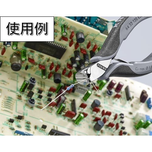 【CAINZ-DASH】KNIPEX社 エレクトロニクスエンドカッティングニッパー オブリケ(15°傾斜) ESDハンドル(静電気防止) 6432-120ESD【別送品】