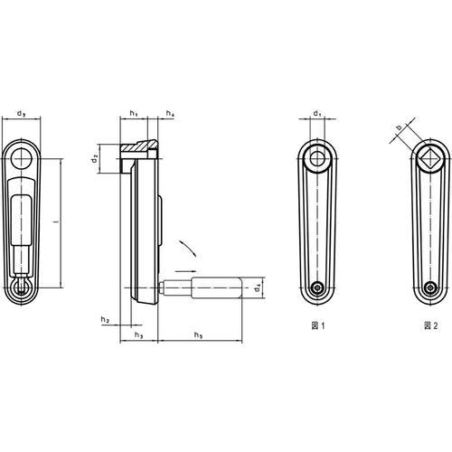【CAINZ-DASH】ロームヘルド・ハルダー 機械用ハンドル クランクハンドル ハンドル折りたたみ可 ブラック 取付穴(mm):角穴10 24331.0305【別送品】