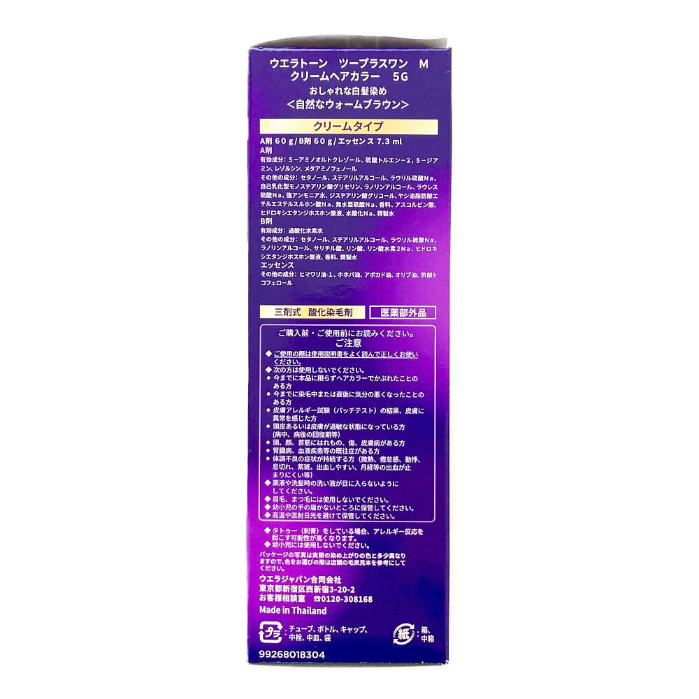 ●A剤/有効成分:5-アミノオルトクレゾール、硫酸トルエン-2.5-ジア ミン、レゾルシン、など ●B剤/有効成分:過酸化水素水、その他の成分:セタノール、ステアリルアルコール、など ●エッセンス/その他の成分:ヒマワリ油-1、ホホバ油、アボカド油、など