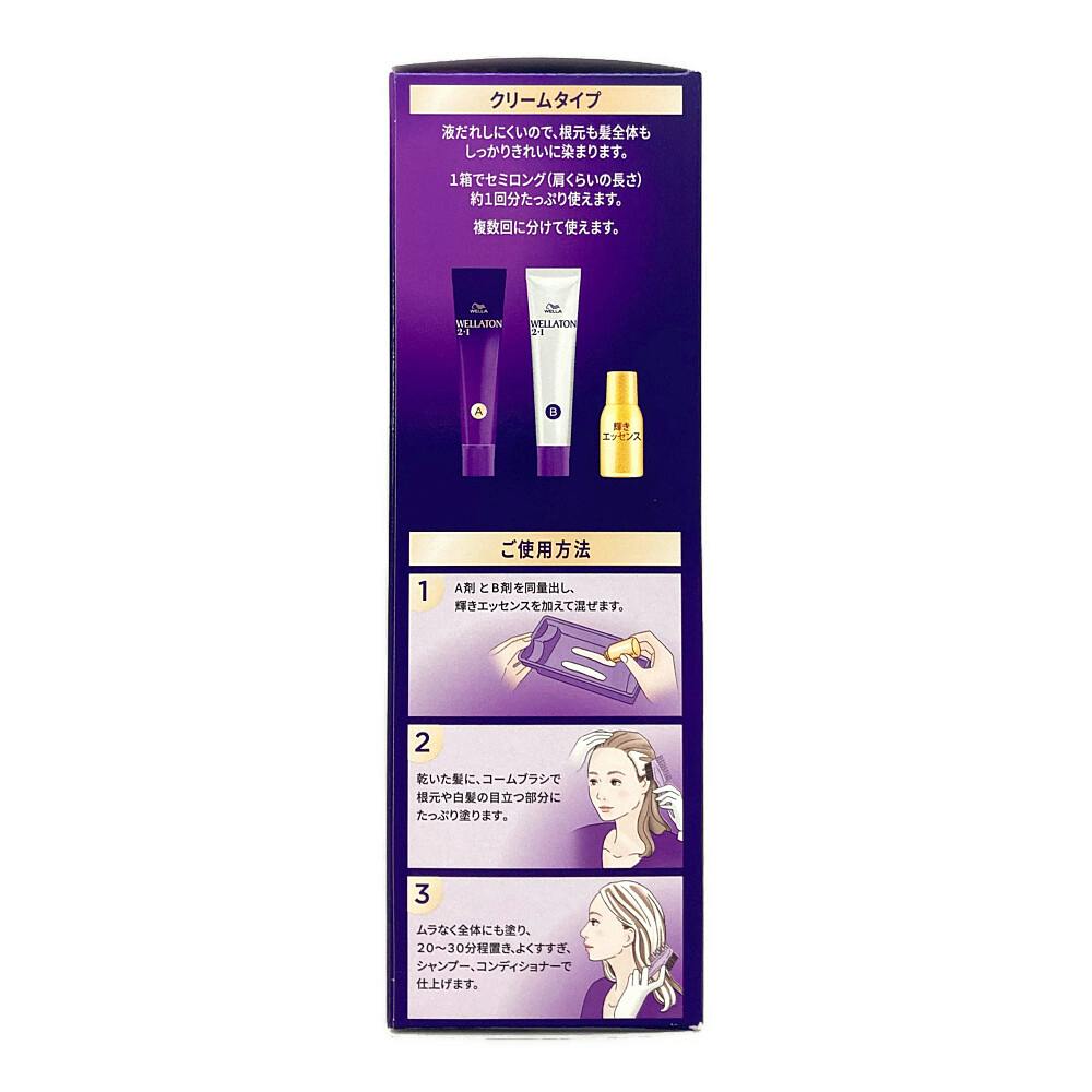 1.A剤とB剤を同量出し、輝きエッセンスを加えて混ぜます 2.乾いた髪に、コームブラシで根元や白髪の目立つ部分にたっぷり塗ります 3.ムラなく全体にも塗り、20~30分程置き、よくすすぎ、シャンプー、コンディショナーで仕上げます
