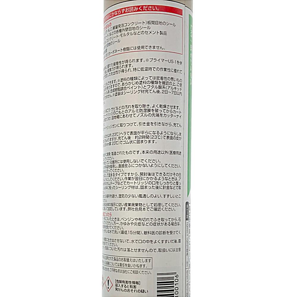 ●ほんどの下地材料に優れた接着性が得られます。プライマーUS-1を併用することで、より強い接着力が得られます。●幅広い温度範囲で安定した吐出性が得られ、特に低温時での作業性に優れています。●施工後、塗装することもできます。