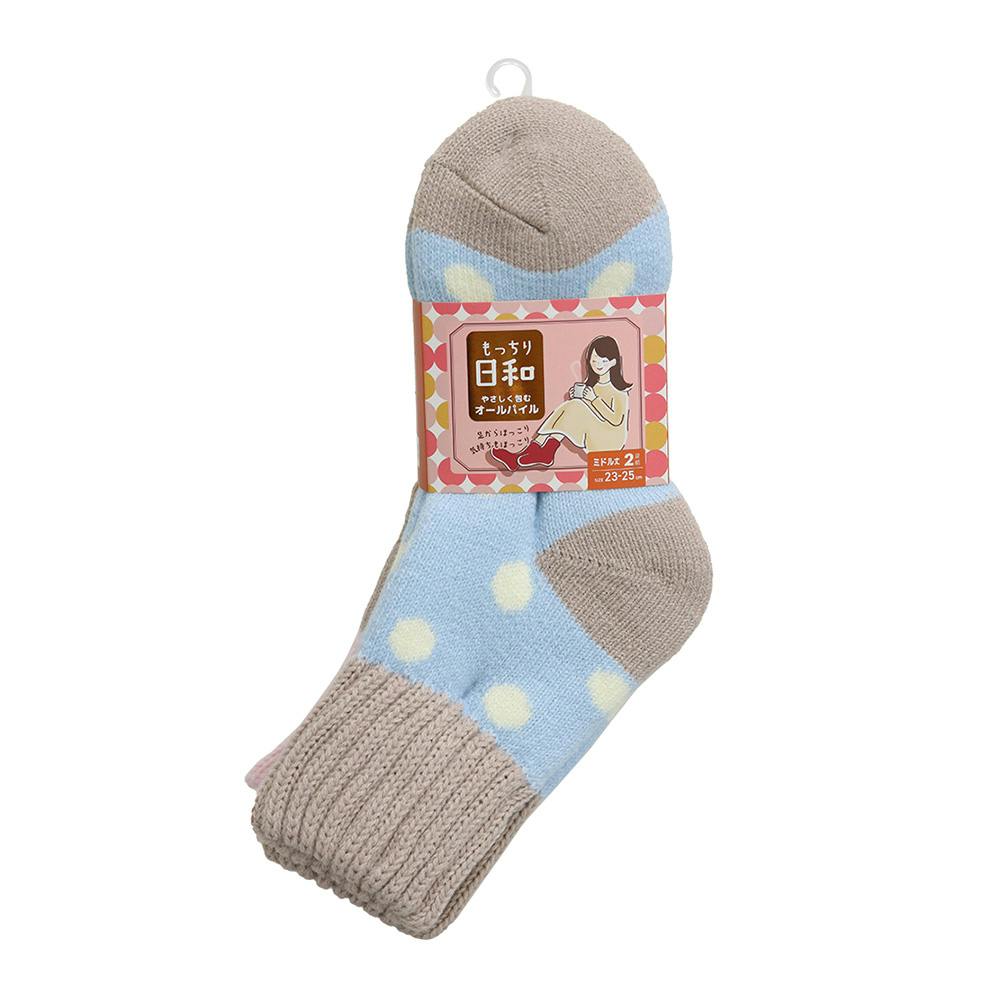 もっちり日和 ミドル丈 水玉 アソート 23cm-25.0cm 2足組