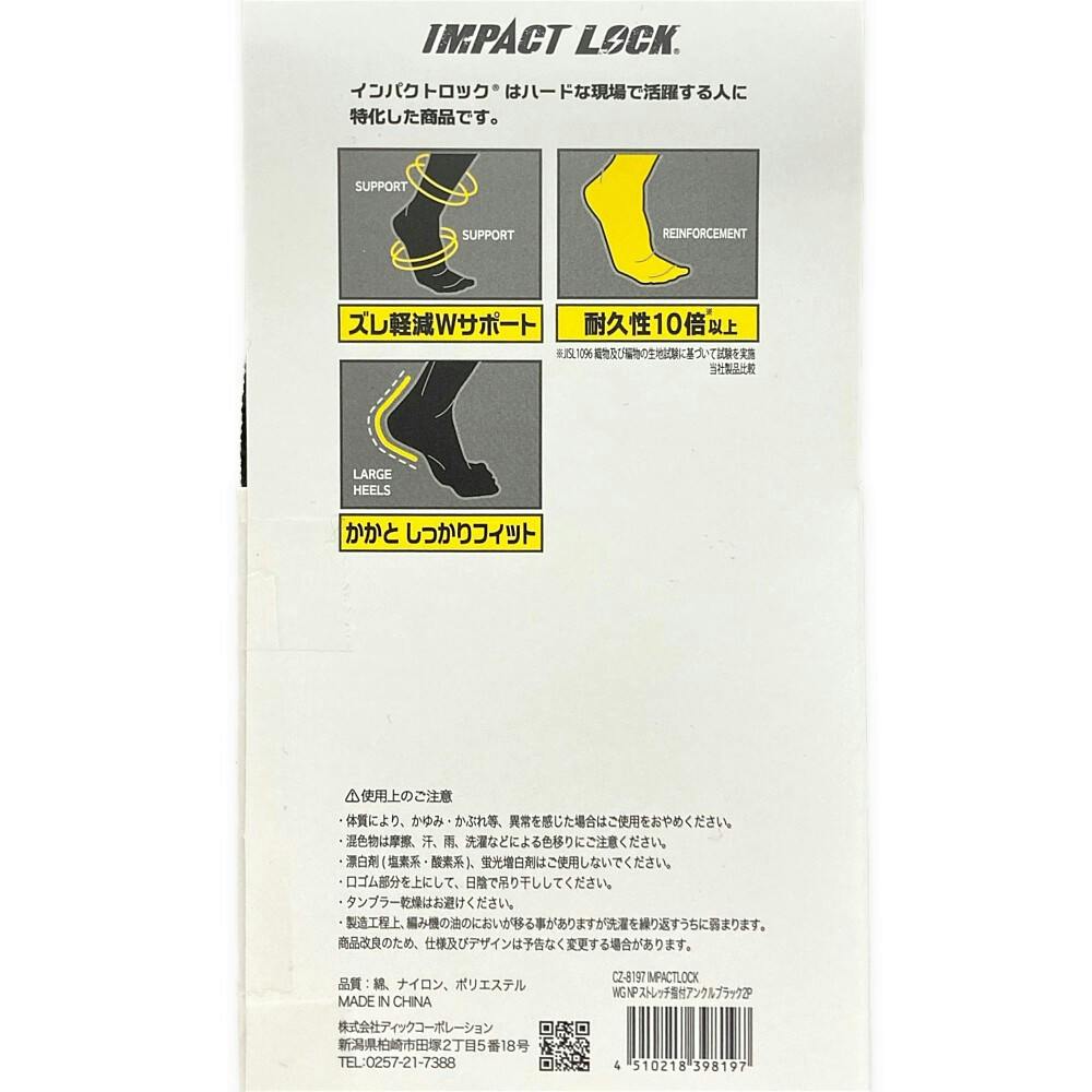 インパクトロック 指付 クルー丈 ブラック 2足組 25-27cm