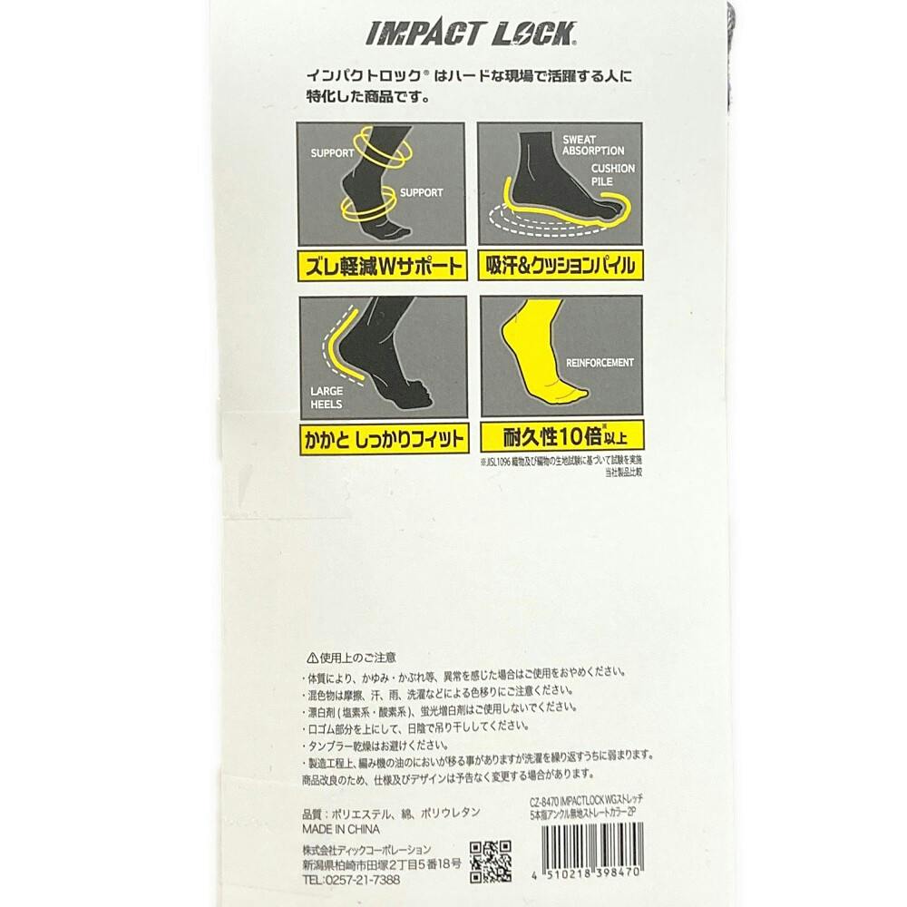 インパクトロック WGストレッチ 5本指 アンクル丈 ストレート 2足組 25-27cm