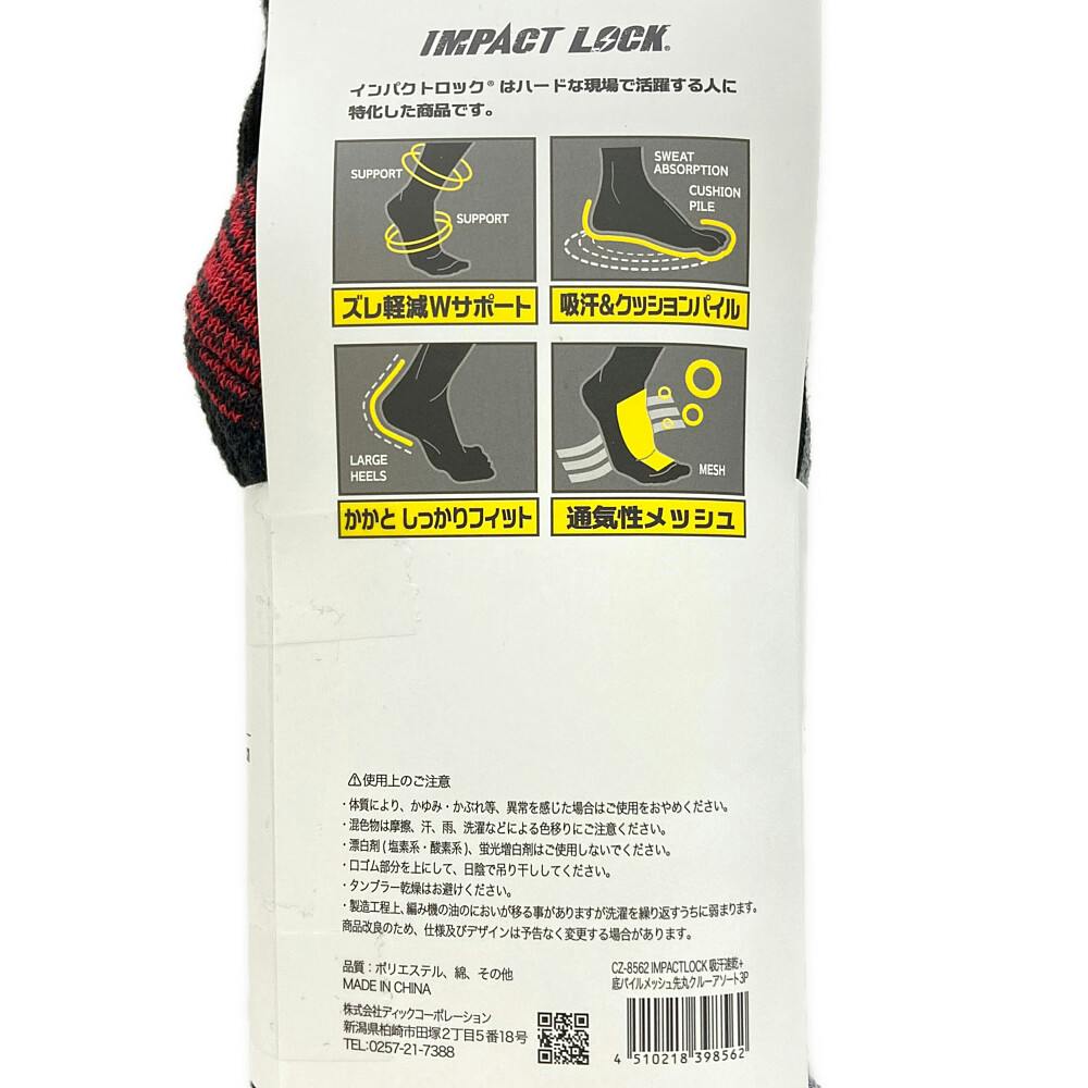 インパクトロック 底パイルメッシュ 先丸 クルー丈 アソート 3足組 25-27cm