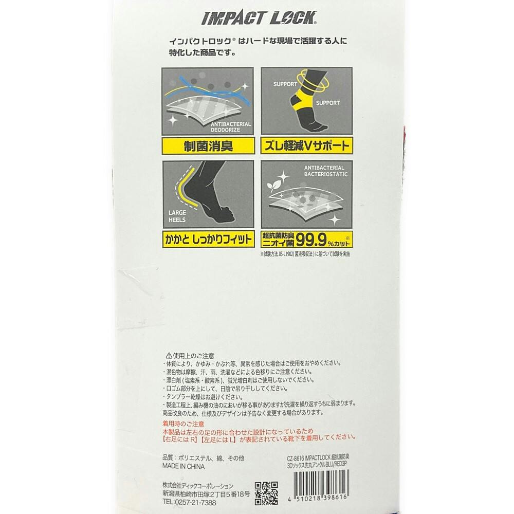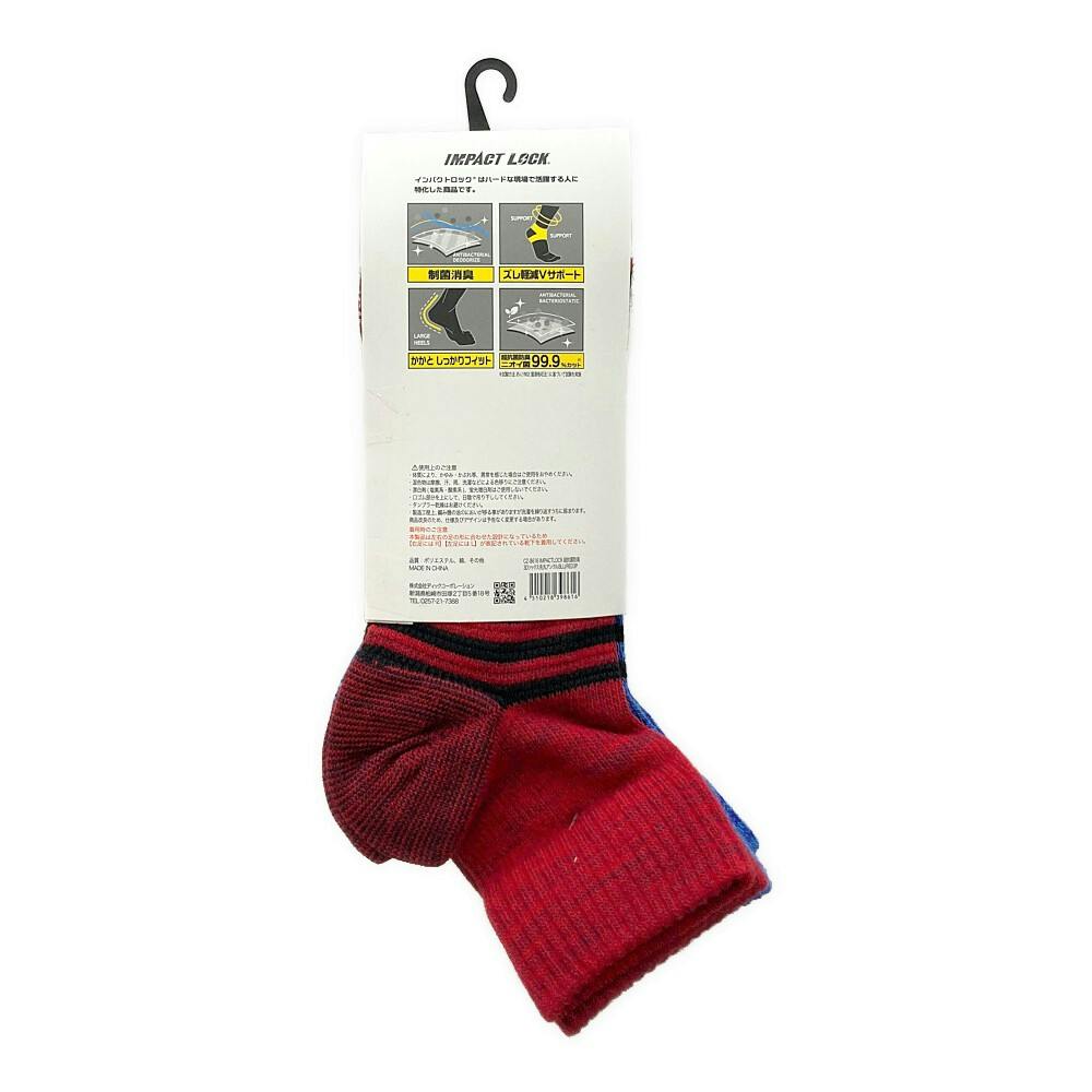 インパクトロック 超抗菌防臭3D 先丸 アンクル丈 ブルーレッド 3足組 25-27cm