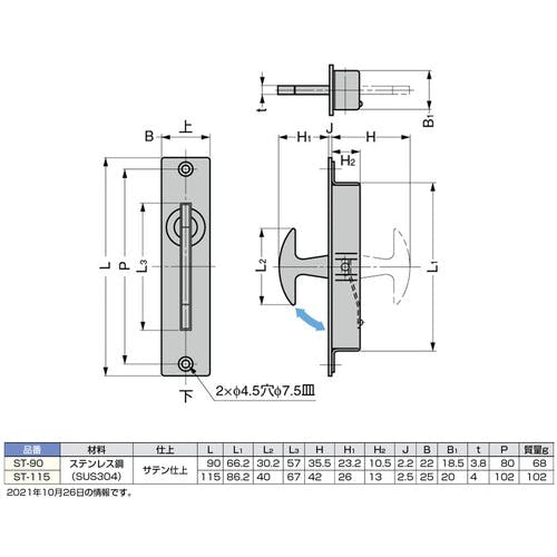 【CAINZ-DASH】スガツネ工業 (100010241)ST-115ステンレス鋼製全回転引手 ST-115【別送品】