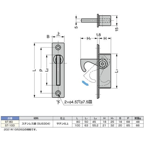 【CAINZ-DASH】スガツネ工業 (100010245)ST-100ステンレス鋼製半回転引手 ST-100【別送品】