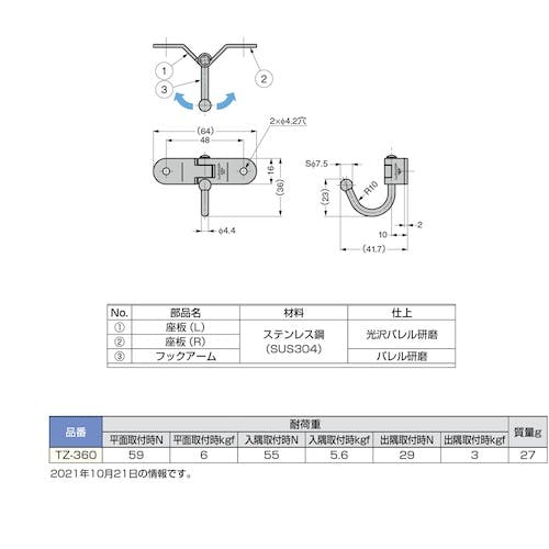 【CAINZ-DASH】スガツネ工業 (110020009)TZ-360ステンレス鋼製 バタフライフック TZ-360【別送品】