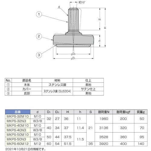 【CAINZ-DASH】スガツネ工業 (200141320)MKPS-32M10ステンレス鋼製アジャスター MKPS-32M10【別送品】