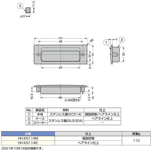 【CAINZ-DASH】スガツネ工業 (100010583)HH-KS114Mステンレス鋼製 埋込取手 HH-KS114M【別送品】