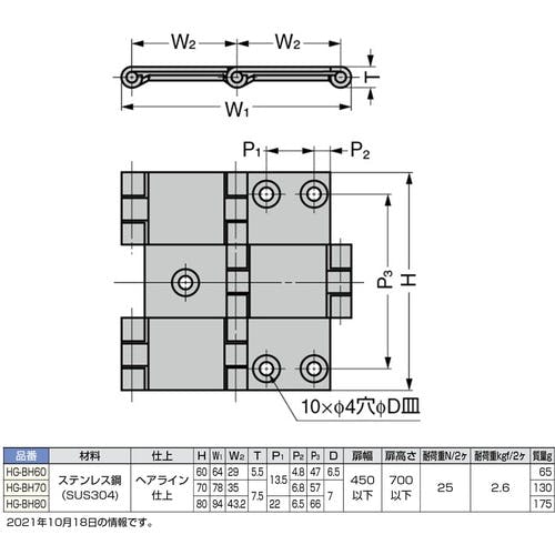 【CAINZ-DASH】スガツネ工業 (170090065)HG-BH60 ステンレス鋼製屏風蝶番 HG-BH60【別送品】