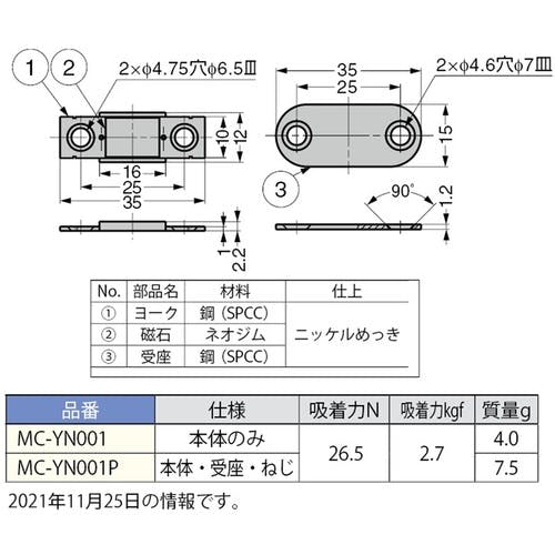 【CAINZ-DASH】スガツネ工業 (140050257) MC-YN001 極薄型マグネットキャッチ MC-YN001【別送品】