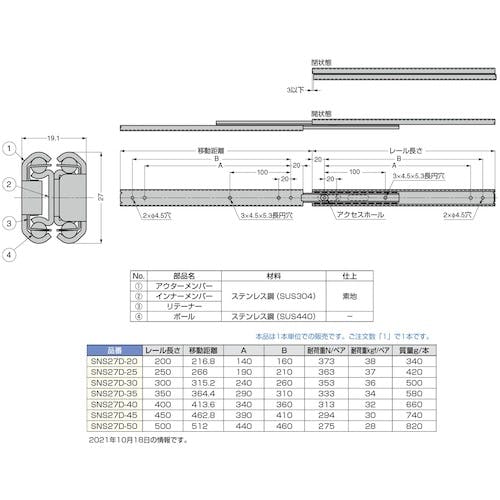 【CAINZ-DASH】スガツネ工業 (190110187)SNS27D-35オールステンレス鋼製スライドレール SNS27D-35【別送品】