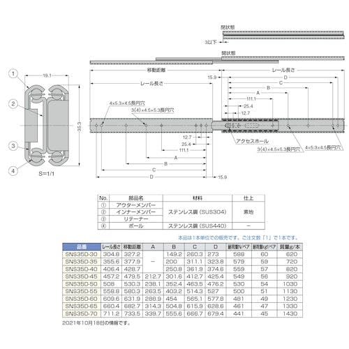 【CAINZ-DASH】スガツネ工業 (190110207)SNS35D-65オールステンレス鋼製スライドレール SNS35D-65【別送品】