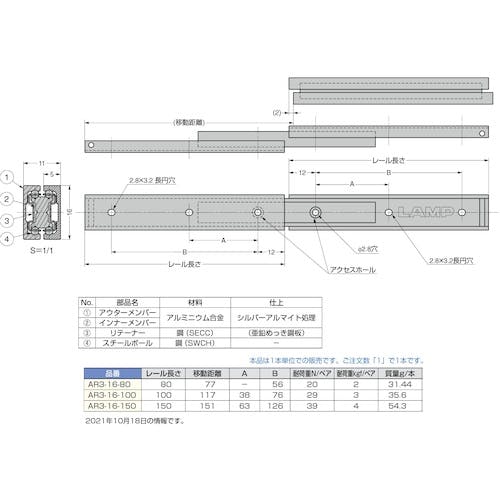 【CAINZ-DASH】スガツネ工業 (190012583)AR3-16-150アルミ合金製ミニスライドレール AR3-16-150【別送品】
