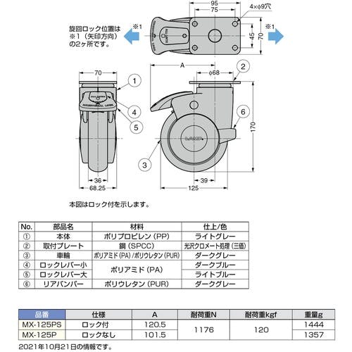 【CAINZ-DASH】スガツネ工業 (200130053)MX-125PS大型デザインキャスター MX-125PS【別送品】