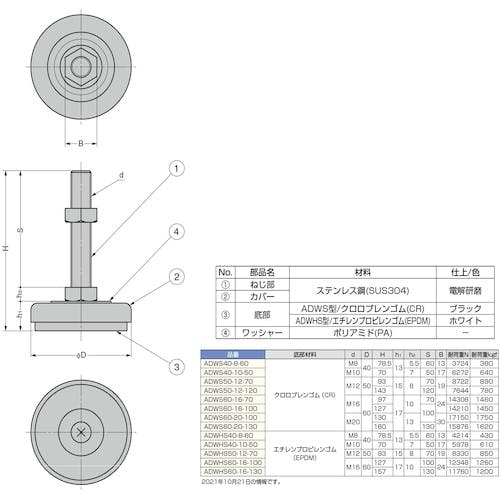 【CAINZ-DASH】スガツネ工業 (200140612)ADWS60-16-100 ステンレス鋼製アジャスター ADWS60-16-100【別送品】
