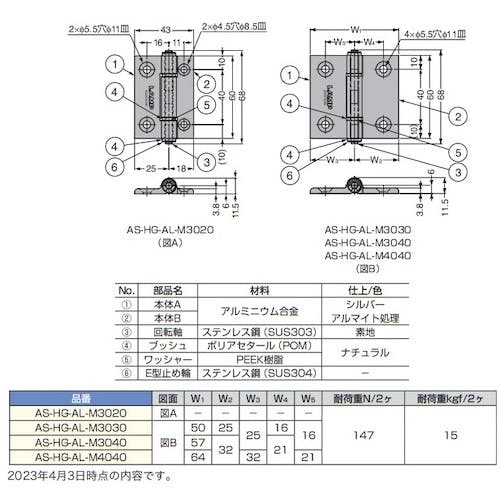 【CAINZ-DASH】スガツネ工業 (170011679)AS-HG-AL-M3020アルミ合金製蝶番 AS-HG-AL-M3020【別送品】