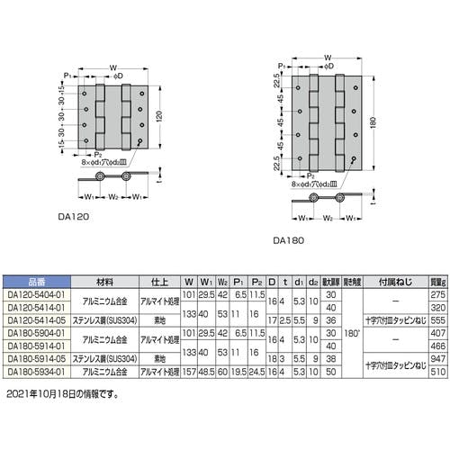 【CAINZ-DASH】スガツネ工業 (170090807)DA180-5914-01スプリング自由蝶番 DA180-5914-01【別送品】