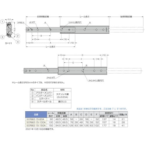 【CAINZ-DASH】スガツネ工業 (190026622)SCRW2-15-150Aミニスライドレール SCRW2-15-150A【別送品】