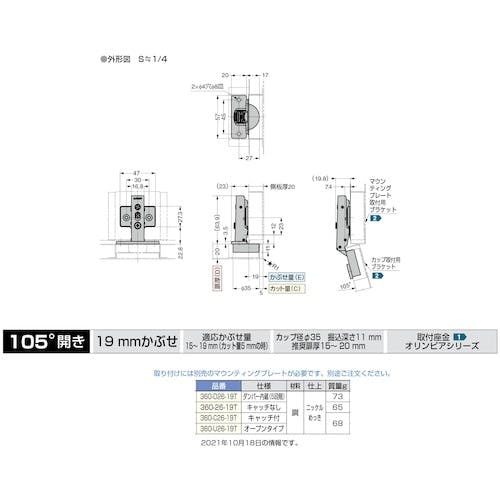 【CAINZ-DASH】スガツネ工業 (160026836)360-26-19Tラプコン搭載 オリンピア スライドヒンジ 360-26-19T【別送品】