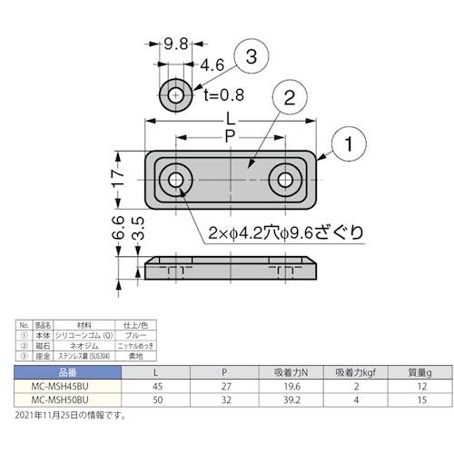 【CAINZ-DASH】スガツネ工業 (140033801)MC-MSH45BUハイジェニックシリコーンマグネットキャッチ MC-MSH45BU【別送品】