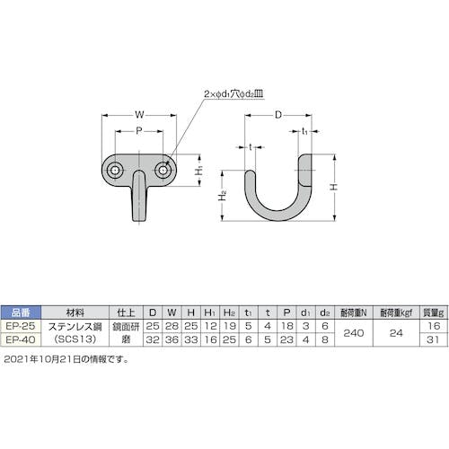 【CAINZ-DASH】スガツネ工業 (110026000)EP-25 ステンレス鋼製フック EP-25【別送品】