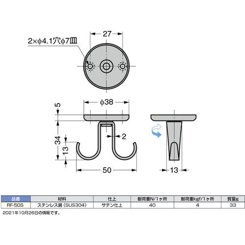 【CAINZ-DASH】スガツネ工業 (110020082) RF-50S ステンレス鋼製ロータリーフック RF-50S【別送品】