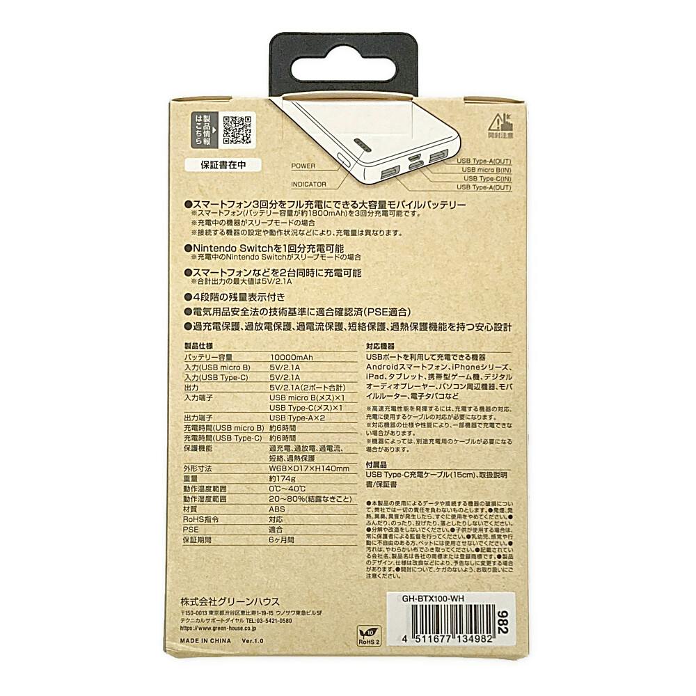 モバイルバッテリー 10000mAh ホワイト GH-BTX100-WH