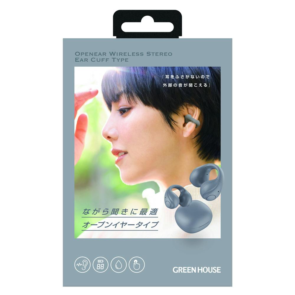 オープンイヤー ワイヤレスイヤホン イヤーカフスタイプ グレー GH-OWSB-GY