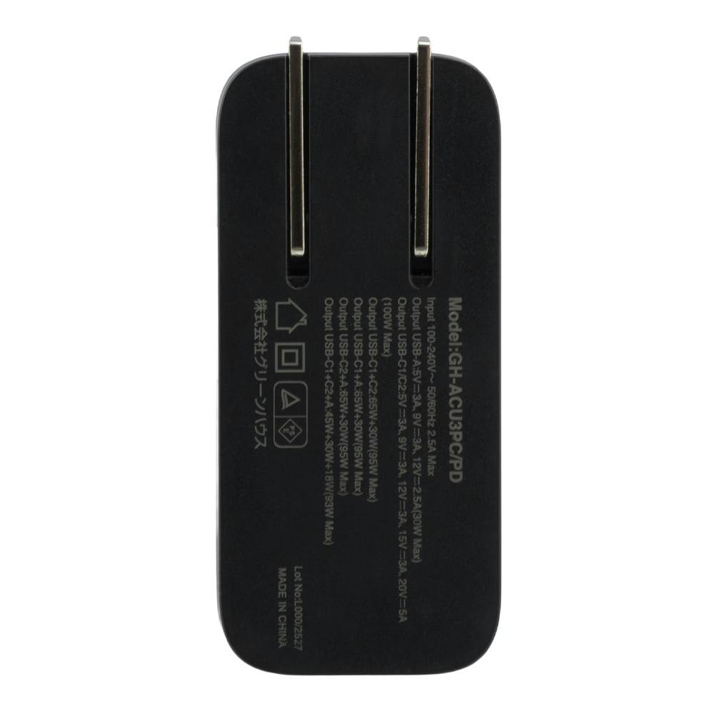 USB-AC充電器 3ポート PD100W対応 ブラック GH-ACU3PC-BK