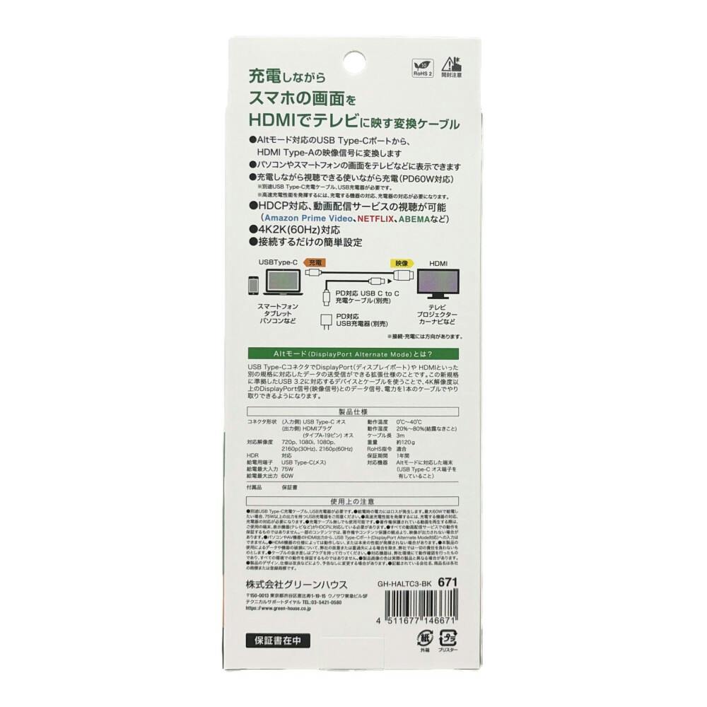 USB Type C to HDMIミラーリングケーブル 3m GH-HALTC3-BK