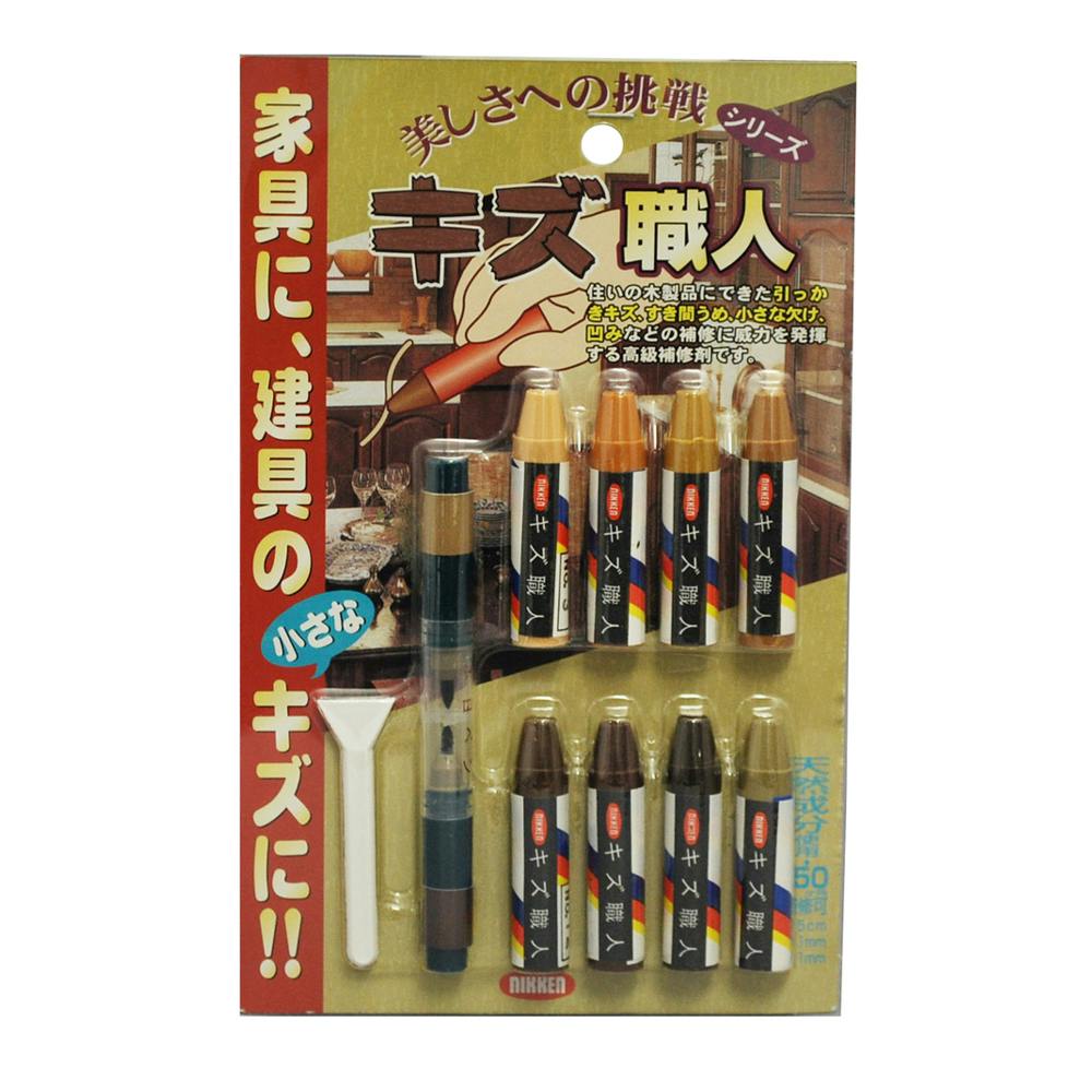 ●キズ職人(パラフィンワックス、顔料)●木目ペン(アルコール、染料、合成樹脂)●ミニヘラ(ABS樹脂)