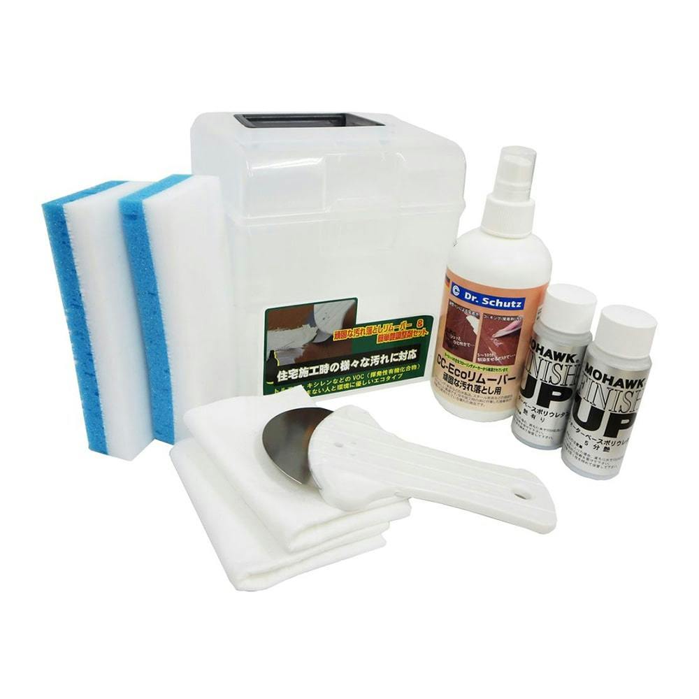 CC-Ecoリムーバー、Rスクレーパー、Wアクションスポンジ2個、フィニッシュアップ、ウエス