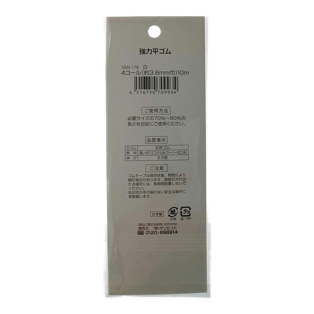 サンアミカ 強力平ゴム 4コール(約3.8mm幅)×10m巻