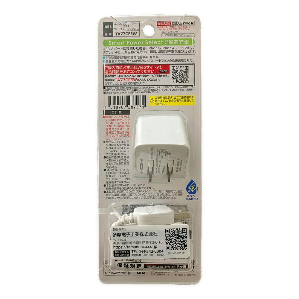 コンセントチャージャー2.4Aフィーチャーフォン対応 ホワイト TTA77CFSW