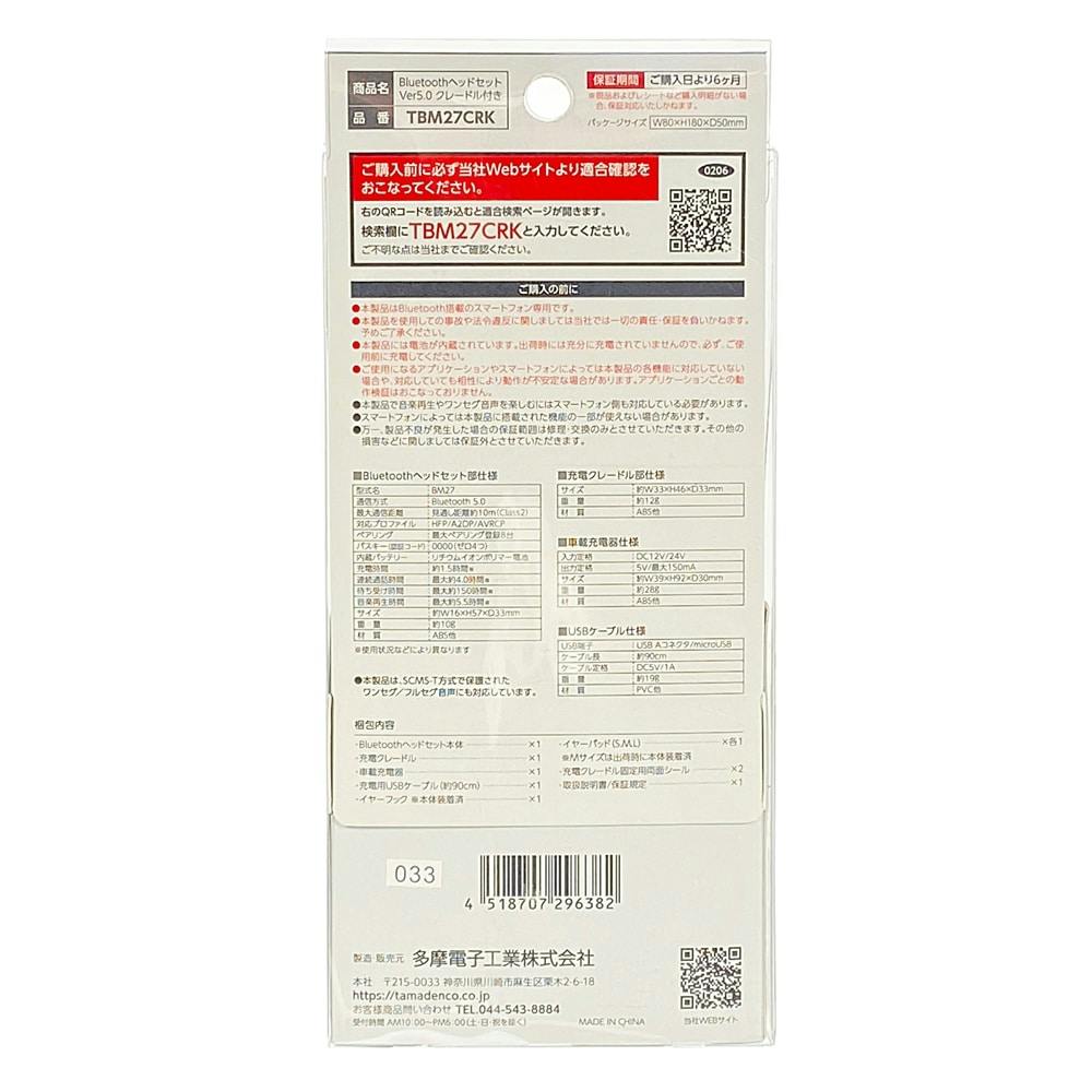 Bluetooth ヘッドセット Ver5.0 クレードル付き ブラック TBM27CRK